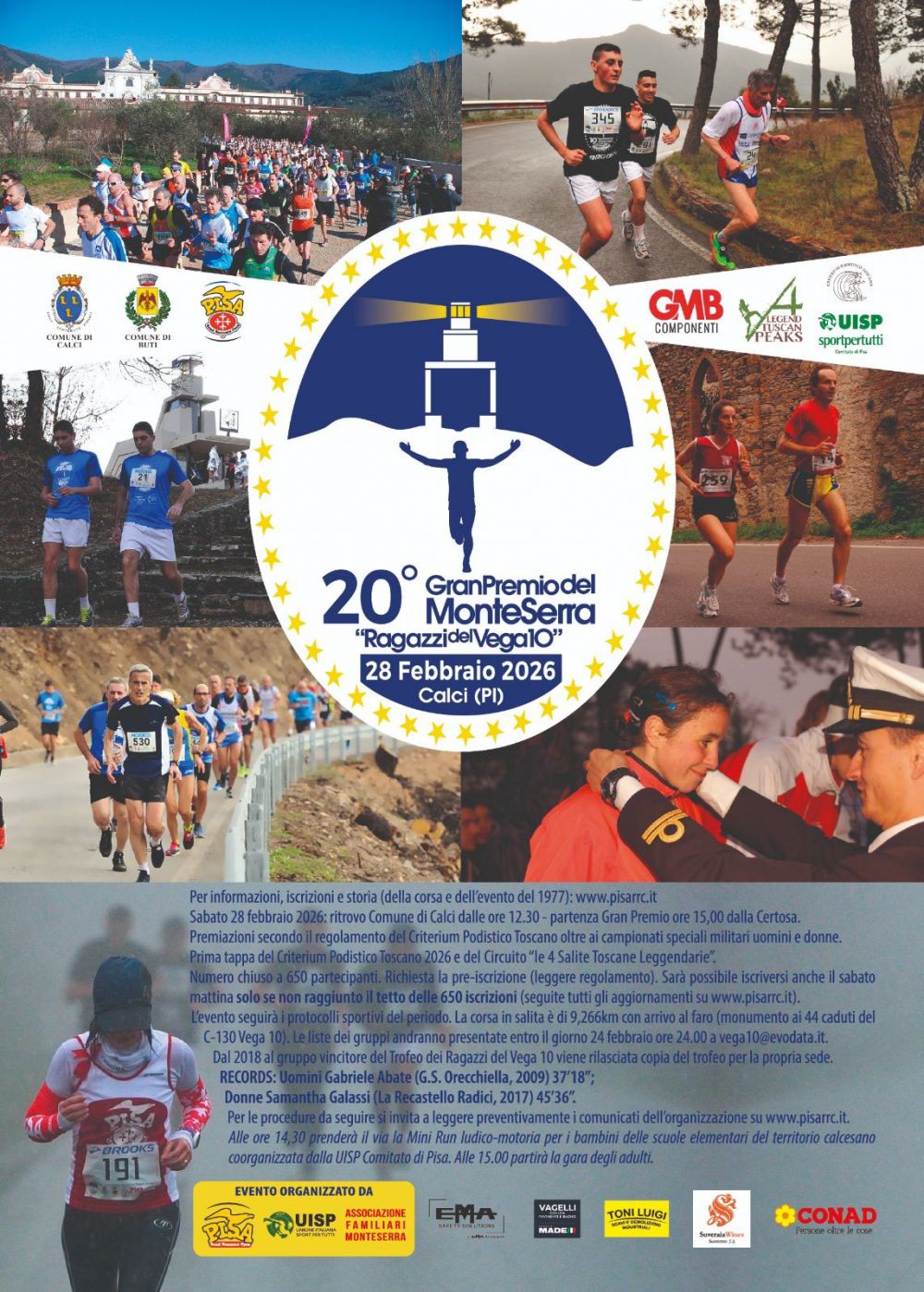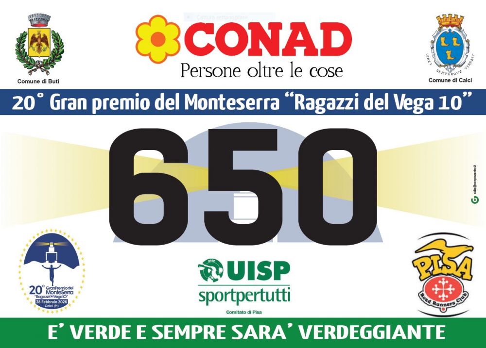 - con anche Comune di Buti, UISP Pisa, GVA "Logli Paolo", Misericordia di Calci, Compagnia Di Calci, Aeronautica Militare, Marina Militare, Esercito Italiano, GP La Verrua, Marathon Club, Conad city Pisa, Panificio Valgraziosa, Suveraia vini di Suvereto, EMA Safety and Securities, Toni Luigi Escavazioni e Vagelli Bagni e Pavimenti.