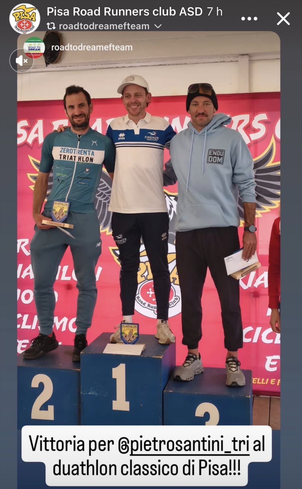 Si è svolto a Tirrenia il challenge, unico nel suo genere, con il doppio appuntamento con Mezzamaratona e 10km la mattina e nel pomeriggio spazio al duathlon classico del Litorale, silver no draft, giunto alla terza edizione, con corsa a piedi abbinata a ciclismo e vittoria per Pietro Santini (Firenze Tri) in 1h45’22” battendo di 1’14” Marco Conti (Zerotrenta Triathlon), vincitore nel 2024, autore di una gran rimonta nella frazione conclusiva di 5 km, terzo il campione uscente e vincitore lo scorso novembre 2025 Domenico Passuello (Livorno Aquatics) a 4’19” pagando dazio proprio nella parte di corsa.