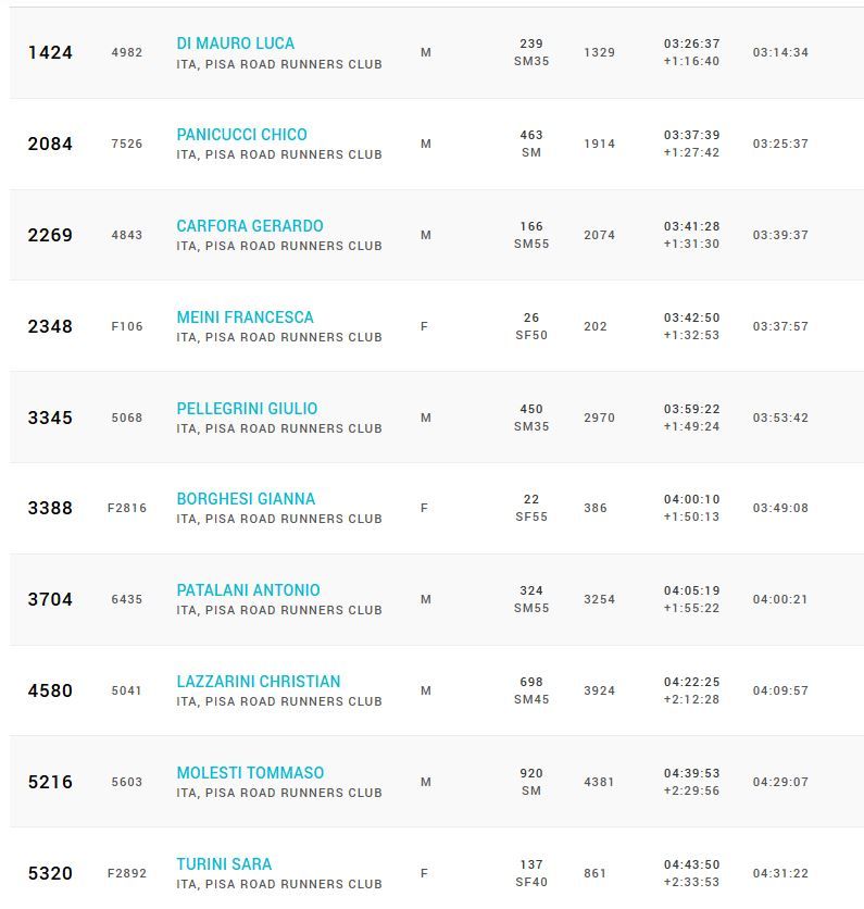30-11-2025 18:06 - Risultati gare, staffette fino alle maratone Atleti/e Pisa Road Runners