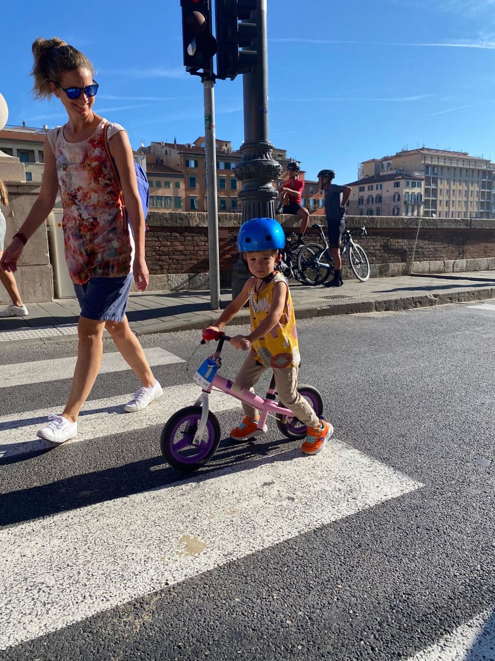 Quindi su percorsi differenziati sono partiti correndo dal ponte di mezzo, coi più piccoli accompagnati da un genitore, poi la seconda frazione in triciclo, balancing o bici di vario genere, ed infine ultimo tratto ancora di corsa.